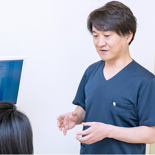 診療で大切にしているのは、患者さまとのコミュニケーションです。ベストな治療法をご提案したいと思っているからこそ、わかりやすい説明を行うとともに、お一人おひとりのお悩みをしっかり伺うようにしています。