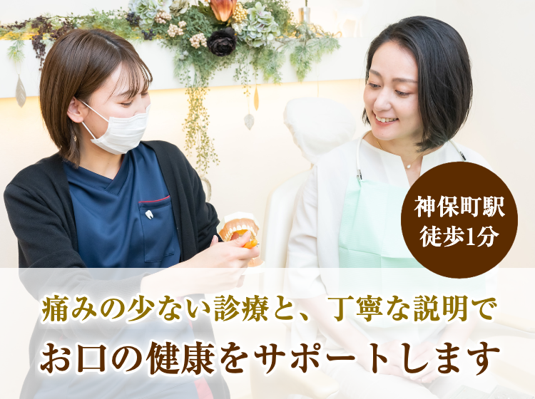 神保町にある歯医者「ナチュラル・スマイル・デンタルクリニック」では、痛みの少ない治療に取り組んでいます。予防歯科からセラミックなどの自費の詰め物・被せ物まで、幅広い診療に対応している歯科医院です。