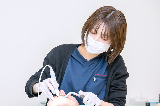 当院には、経験豊富な歯科衛生士が在籍しています。歯石やプラークを除去するテクニックの向上をめざして技術力の研鑽に励んでいますので、歯周ポケット(歯と歯ぐきの間の溝)の歯石までしっかりと取り除くことが可能です。